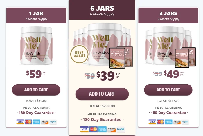 BioVanish is typically offered in bundle packages, with pricing structured to reward longer-term use: