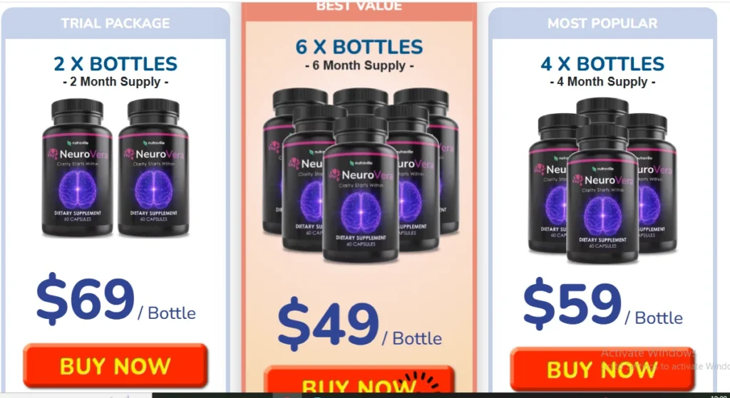 NeuroVera is available in multiple bundle options, and the price per bottle decreases when you buy more.