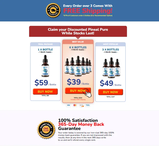 Pineal Pure is currently available only through its official website.Purchasing from the official source ensures that customers receive the genuine product along with the full refund guarantee and any promotional offers.